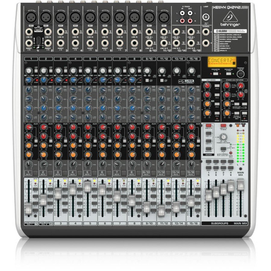 The “Big Daddy” of the series is the QX2442USB, with its 10 state-of-the-art, XENYX-powered mic inputs, 4 stereo channels, 4 Aux Sends and 4 stereo Aux Returns, and our easy to use “one knob” compressors, Inserts and direct Outputs on each of the mono channels. Other features available exclusive to the QX2442USB are: 4 subgroups for mixing versatility; Main Inserts (the ideal path for connecting graphic equalizers or compressor/limiters); 8 Direct Outs and Sub Outs for analog recording purposes.