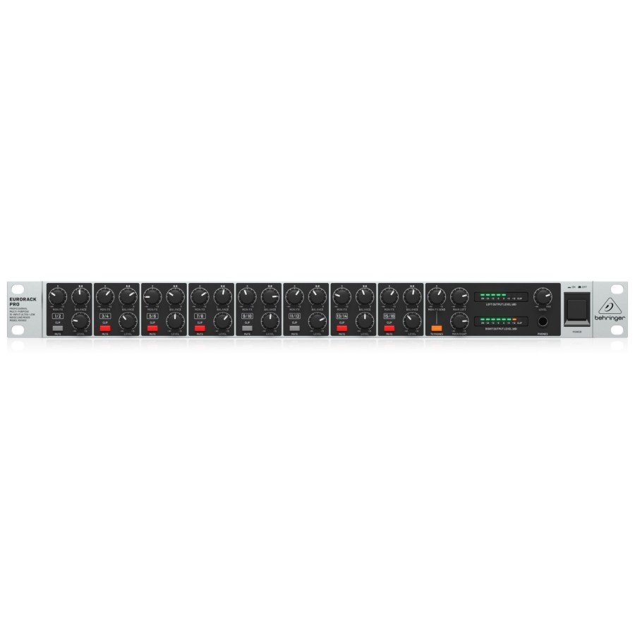 The rack-mountable RX1602 mixer enables you to effortlessly achieve premium-quality sound, thanks to 16 balanced ultra-low noise, high-headroom line inputs, which can be used for 8 stereo inputs, 16 mono inputs – or any combination thereof. This high level of versatility makes the RX1602 a multipurpose line mixer that is ideal for both your live performances and studio recording projects. The incredible RX1602 is perfect for sub-mixing multiple keyboards, sound modules and samplers – and is an absolute “must-have” for monitoring your multitrack recording projects! So easy to use and loaded with intuitive features, the EURORACK PRO RX1602 should be in every recording enthusiast’s or live performer’s toolkit.