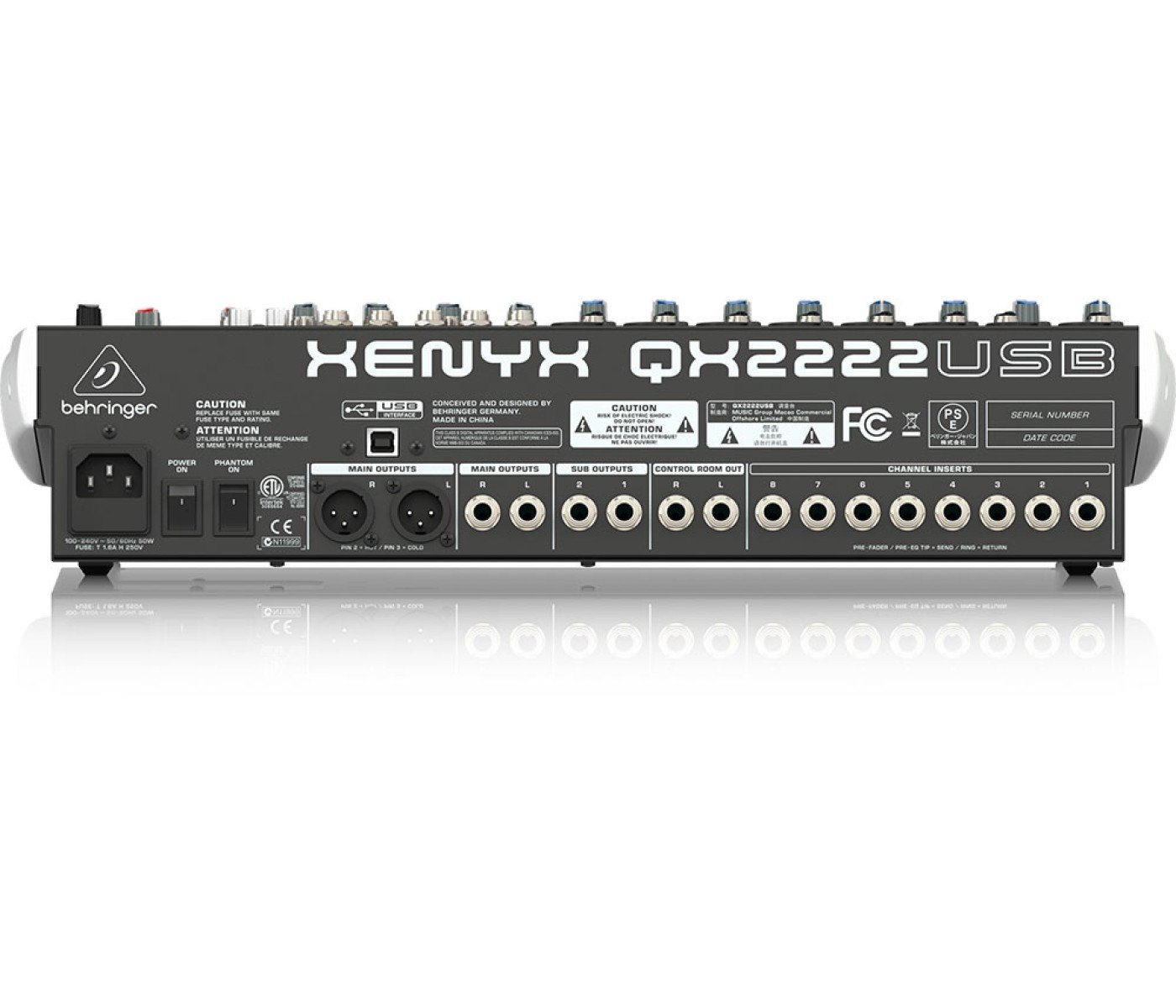 Specification: Behringer Xenyx QX2222USB Mixer with USB and Effects