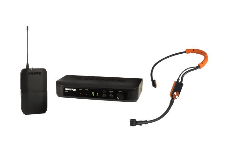 The Shure BLX14/SM31 Wireless Fitness Headset System combines professional-quality sound with simple setup and up to 14 hours battery life for legendary audio performance right out of the box. The system includes BLX4 tabletop single-channel receiver, SM31FH headset microphone (w/ moisture-repelling construction) with BLX1 bodypack transmitter, clothing clip, power supply, 2 AA batteries, windscreens, and user guide.