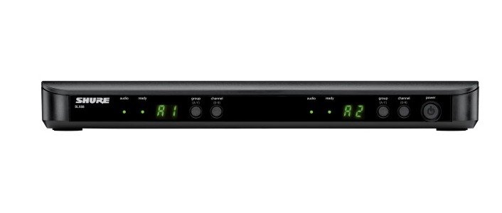 The Shure BLX288/PG58 Wireless Dual Vocal System combines professional-quality sound with simple setup and up to 14 hours battery life for great audio performance for two vocalists right out of the box. The system includes BLX88 tabletop dual-channel receiver, 2 PG58 handheld transmitters, 2 microphone clips, power supply, 2 AA batteries, and user guide.
